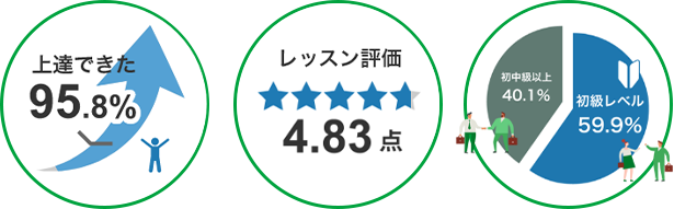 - 「レッスン内容が柔軟で丁寧に教えてもらえる。スケジュールも柔軟に組める。」【30代・男性】