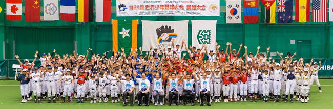 本年の大会は、世界各国・地域から15カ国、計155名の子どもたちが集まりました。参加者の中には、野球を初めて体験する子どももいて、国際野球連盟(IBAF)から選任されたコーチの指導による野球教室や、経験者の子どもたちと一緒になって、野球の楽しさを経験しました。