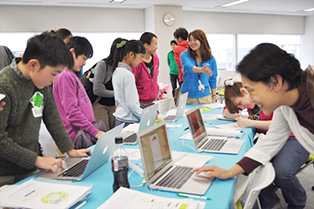 「日頃からプログラミングに興味がある」、「学校以外でも英語を話したい」、など向学心が高い小学3年生から6年生の22名が参加し、英単語カードをもとにオリジナルの図鑑アプリを半日掛けて開発しました。