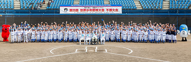 また、本年で記念すべき開催25回目を迎え、大会の提唱者である王貞治氏と、もう一人の提唱者ハンク・アーロン氏が海外から駆けつけ、参加した少年少女たちを激励しました。子どもたちにとっても、ホームランキングの二人から野球を教えてもらえる貴重な機会となった様子で、例年以上の盛り上がりを見せました。