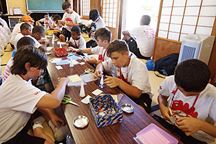 今年の交流行事は、ふるさとの技体験!ろうそくに千代紙を貼って、一人ひとりオリジナルのろうそくを作りました。