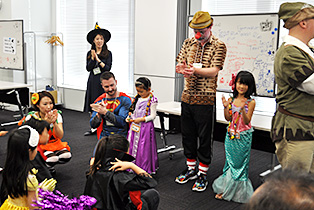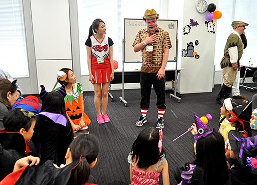 箱の中身を当てるゲームでは、インストラクターの「What’s in the box?」の問いかけに英語で答えたり、ビンゴゲームでは数字の代わりに「pumpkin」や、「Witch」、「vampire」などのハロウィンに関する単語を用いたマスを揃えたりなど、日常のコミュニケーションだけでなく、ハロウィンにちなんだ単語にも触れられる機会となりました。