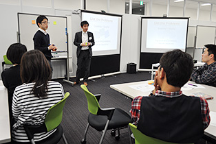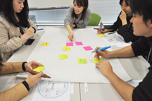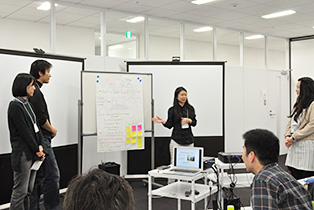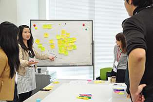 「フレックスタイムが使いづらい」という問題に対しては、会社の風潮があるので、「フレックスを使うトライアル期間やチームを作って、全員で強制的に使ってみる」という解決策や、「情報過多で、社内やグループ内のコミュニケーションや情報シェアが上手くできていない」という問題では、「社内イントラネット上で誰でもQ&Aを投稿、回答できるようなシステムを導入する」という社内の情報網を上手く活用する解決策を提案するグループもありました。