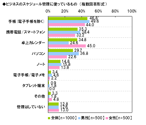 全回答者(1,000名)に、スケジュール管理やビジネス上のメモなどに何を使っているか聞きました。