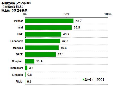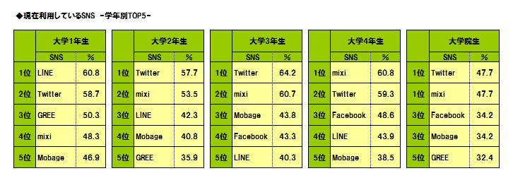 現在利用のSNS トップは「Twitter」、大学1年生では「LINE」がトップ