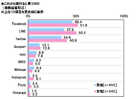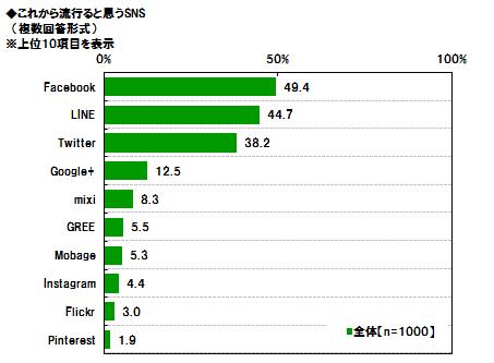 今後流行ると思うSNS トップは「Facebook」、2位「LINE」