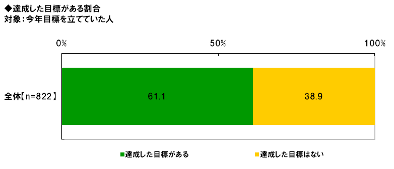 それでは、今年の目標はどれくらい達成できたのでしょうか。今年目標を立てていた822名が、調査時点(2012年11月)で達成できていた目標があるのかをみると、「達成した目標がある」は61.1%、「達成した目標はない」は38.9%でした。