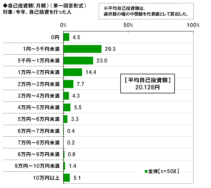 自己投資を行ったビジネスパーソンは50.8%、平均自己投資額(月額) 20,128円