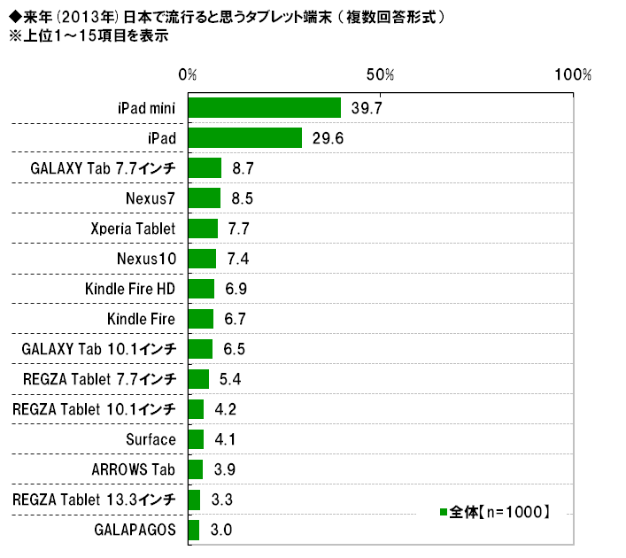 来年流行ると思うタブレット端末 「iPad mini」、「iPad」が断トツ