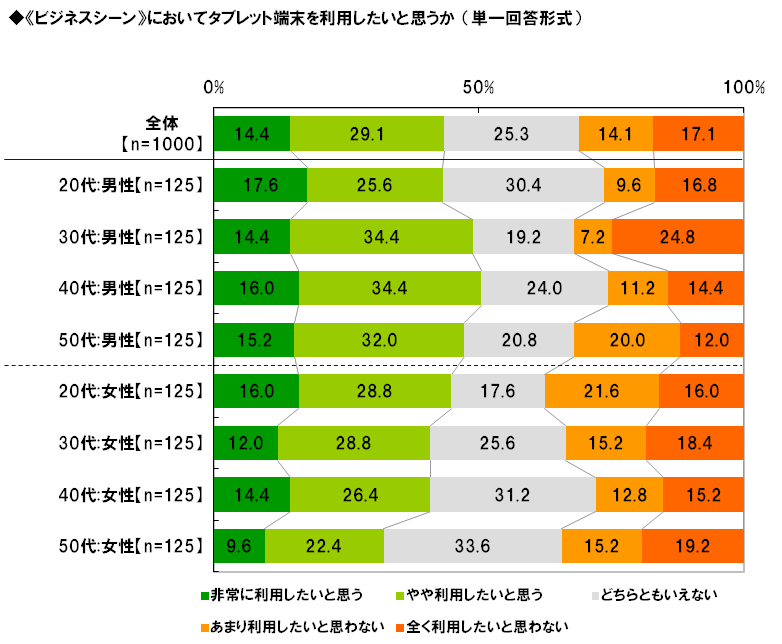 タブレット端末を「利用したい」ビジネスパーソン 57.0%