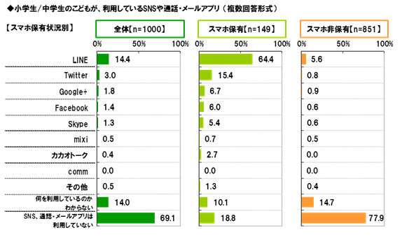 ~~小中学生のSNS・メールアプリ利用状況~~