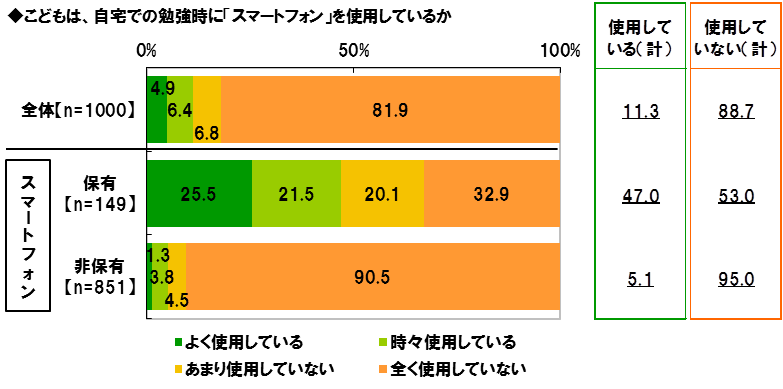 自宅での勉強時に“スマホ”を利用 スマホ保有小中学生の47.0%