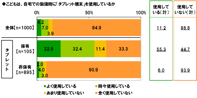 ◆自宅での勉強時に“タブレット”を利用 タブレット保有小中学生の55.3%