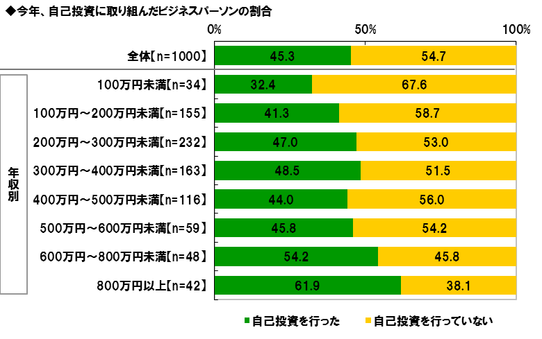 今年、自己投資に取り組んだビジネスパーソンは45.3%