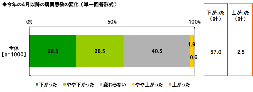 ◆今年の4月以降の購買意欲 「下がった」57.0%