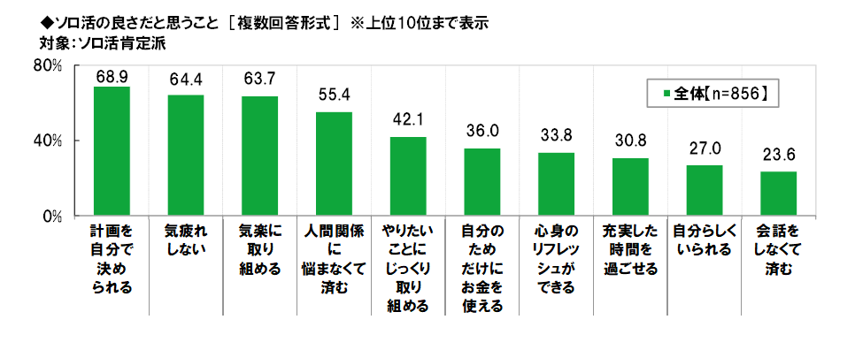 ■ソロ活肯定派が考えるソロ活のメリット 1位「計画を自分で決められる」2位「気疲れしない」