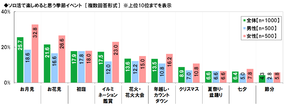 ■ソロ活で楽しめると思う季節イベント 「ひとりお月見」「ひとりお花見」「ひとり初詣」「ひとりイルミ鑑賞」