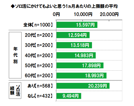 また、ソロ活経験の有無別にみると、ソロ活経験者の平均額は20,239円で、未経験者の平均額(9,494円)よりも10,745円高くなりました。